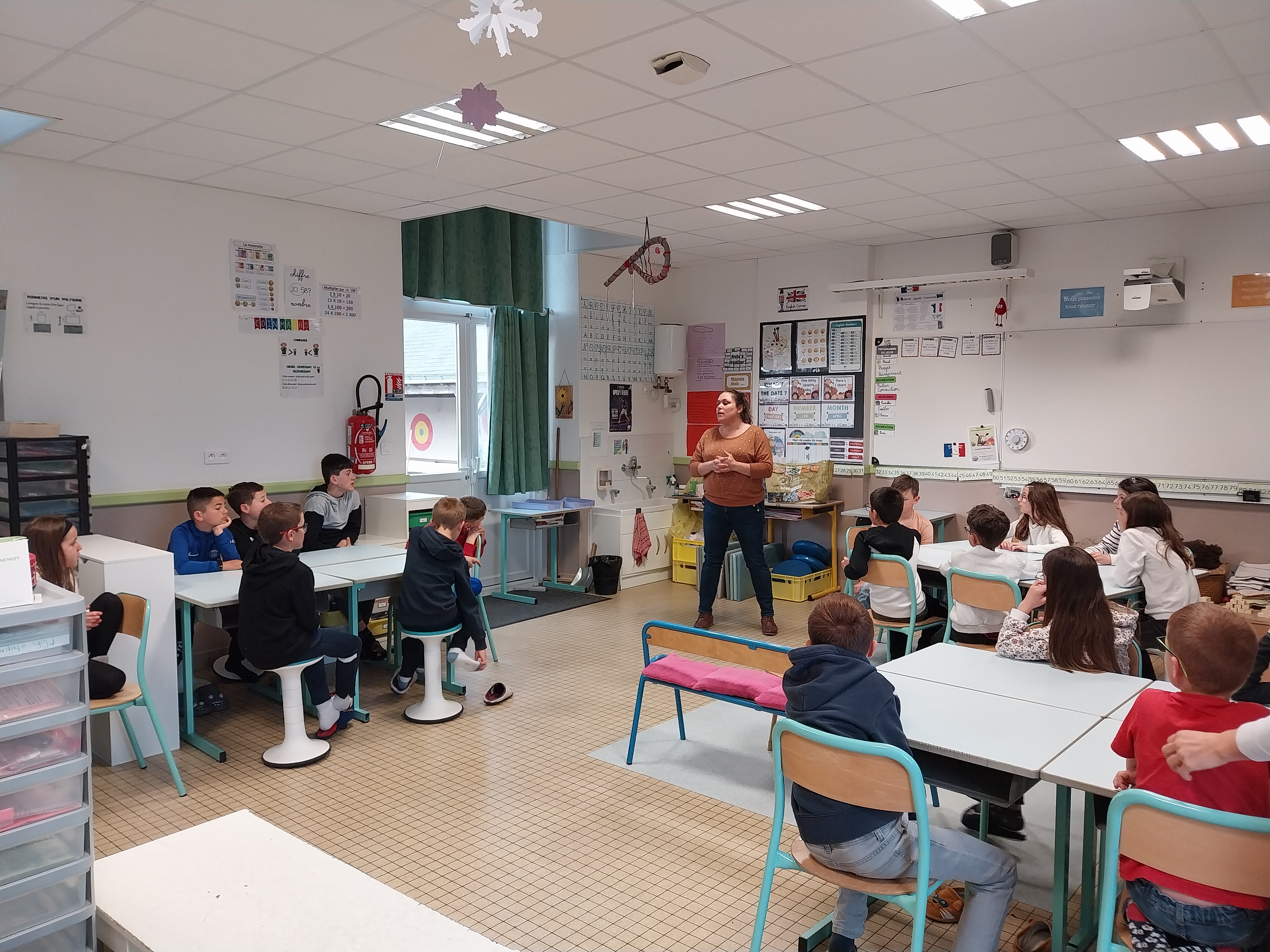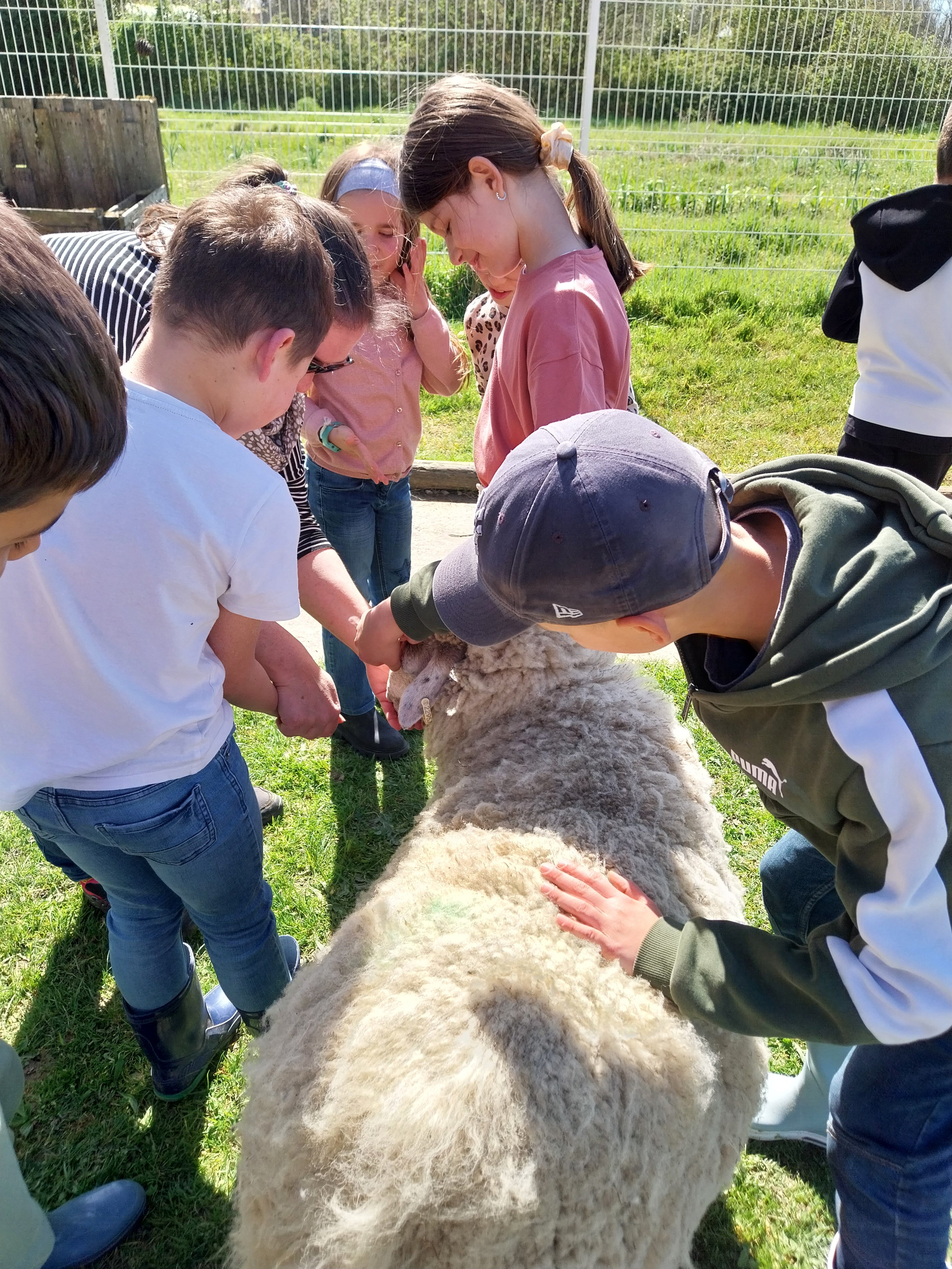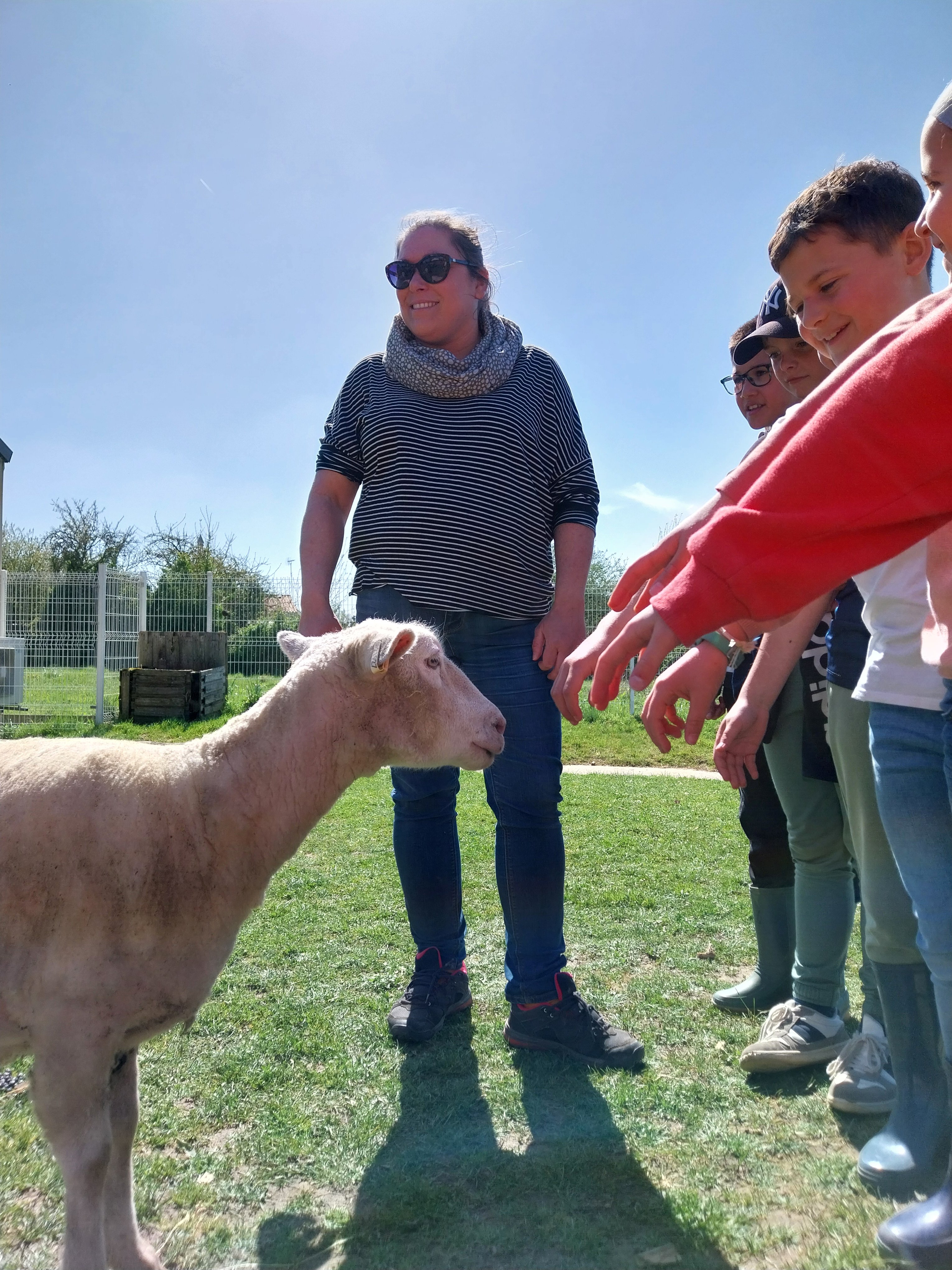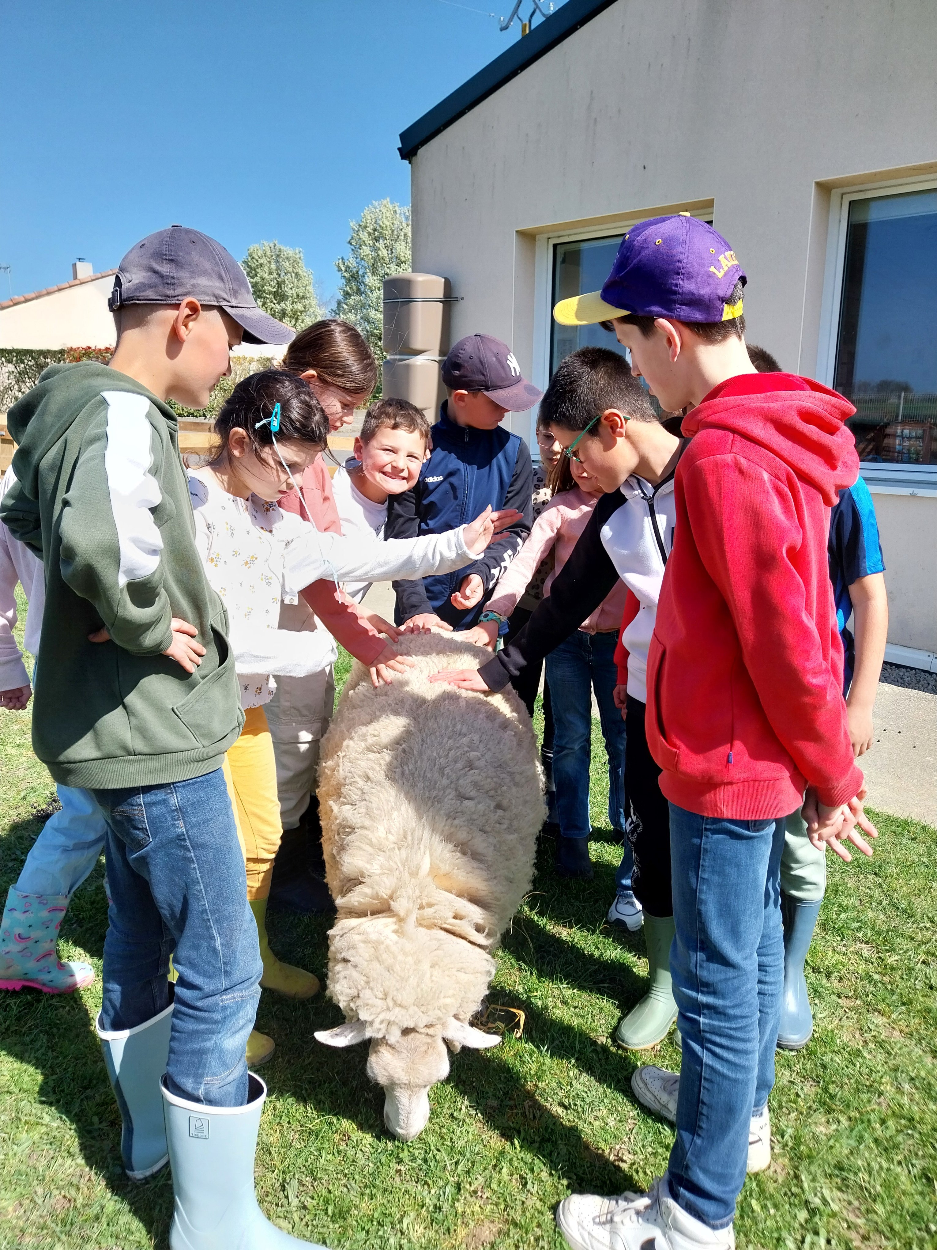 Cette semaine, avant les vacances de printemps, nous avons accueilli dans notre cour d’école 3 moutons :  Tagada, Supertop et Lune.
