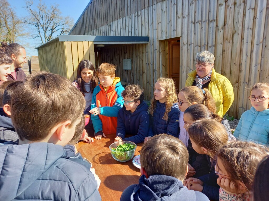 Nous avons ensuite visité les serres, identifié les différents légumes qui y poussent, ainsi que les différents dispositifs pour faire fuir les prédateurs, favoriser la pollinisation, fertiliser la terre…Tout cela dans le respect de la nature et du vivant.